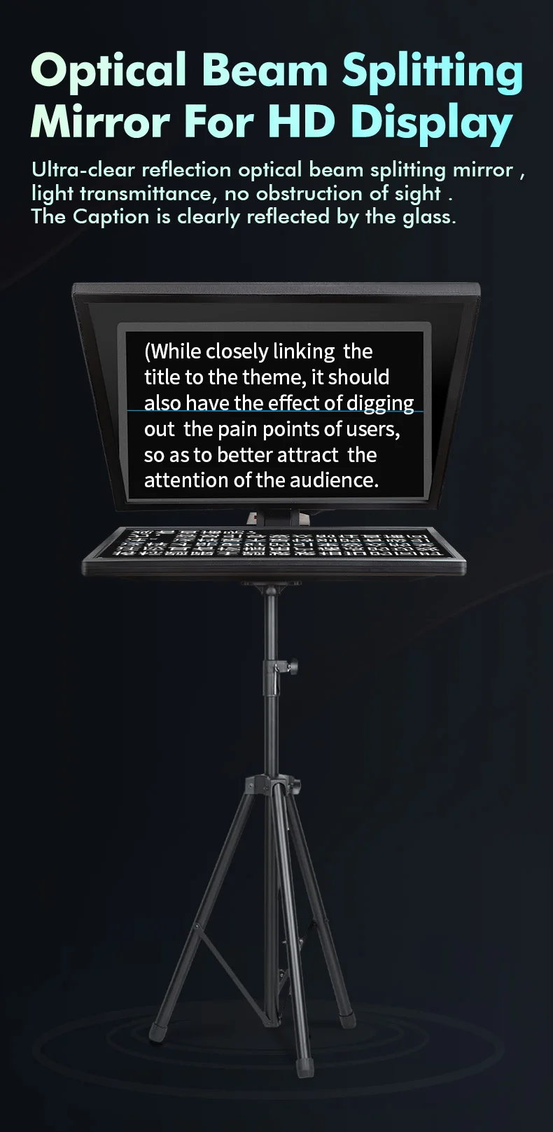 Featuring high-quality beam-splitter glass, the Desview T22 delivers sharp, distortion-free text reflection for a natural on-camera presence. Its wide compatibility supports most DSLR and mirrorless cameras, tablets, and smartphones, making it ideal for professional studios, YouTubers, broadcasters, educators, and corporate video teams.