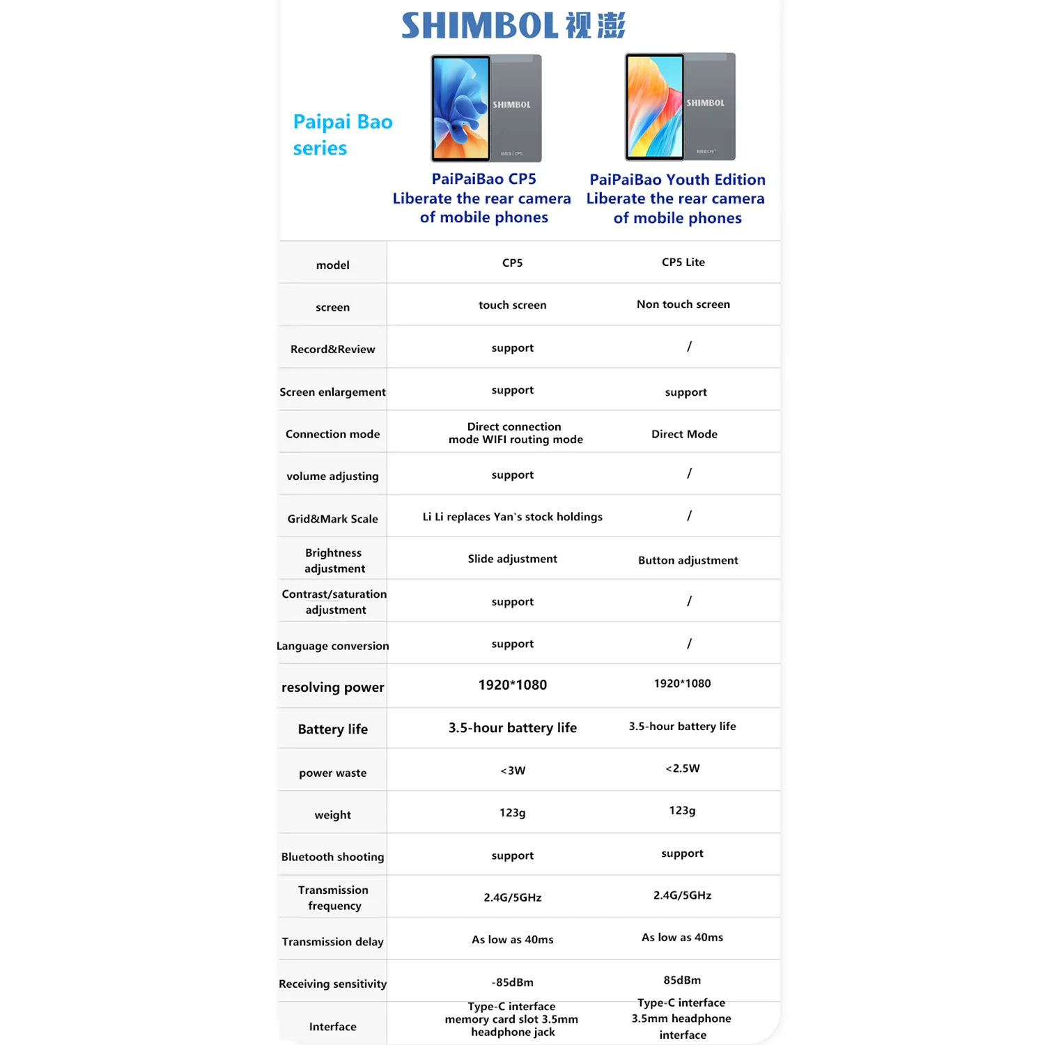 Shimbol CP5 Lite, 5-inch vlog monitor, phone selfie monitor, 1080P FHD phone screen, iPhone selfie monitor, Samsung vlog screen, rear camera selfie monitor, mobile video monitor, vlog accessories, smartphone filming monitor.