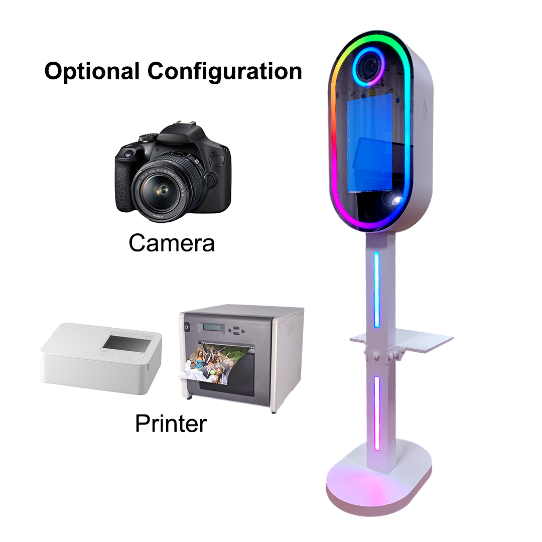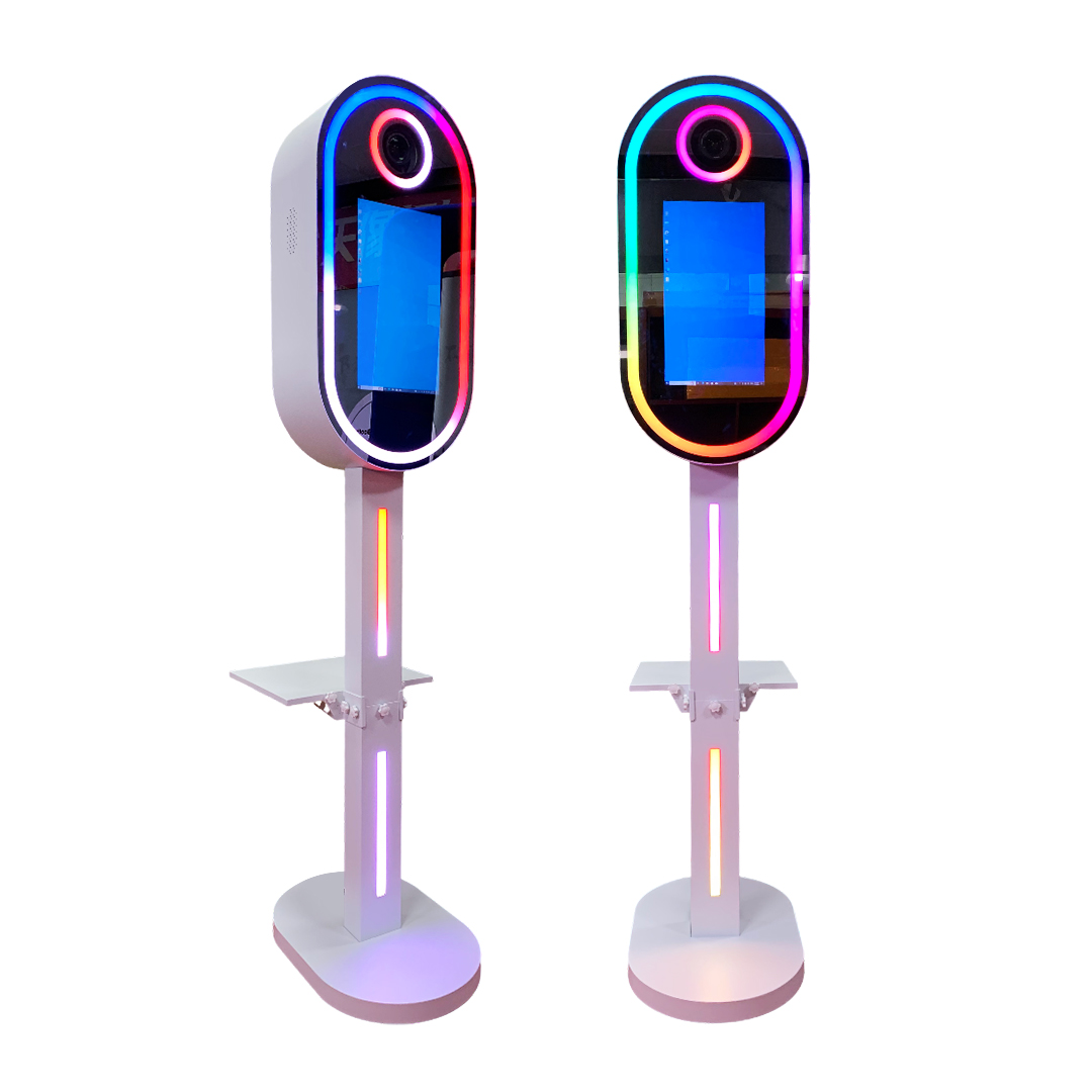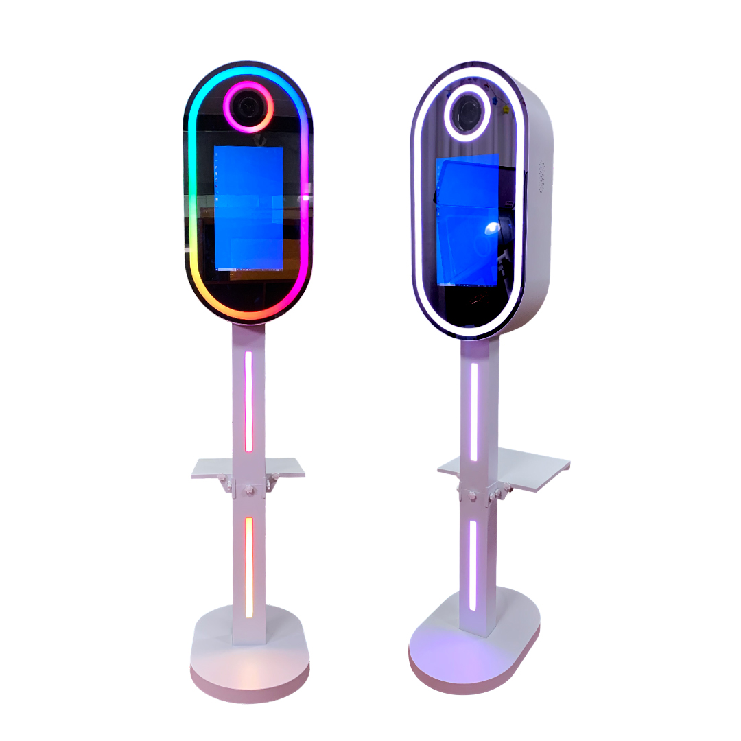 This professional 15.6-inch LCD touch screen mirror photo booth delivers an interactive user experience with smooth touch control and a modern mirror finish that guests love. Available in elegant White or classic Black color options 🤍🖤 to perfectly match any event theme or brand identity.