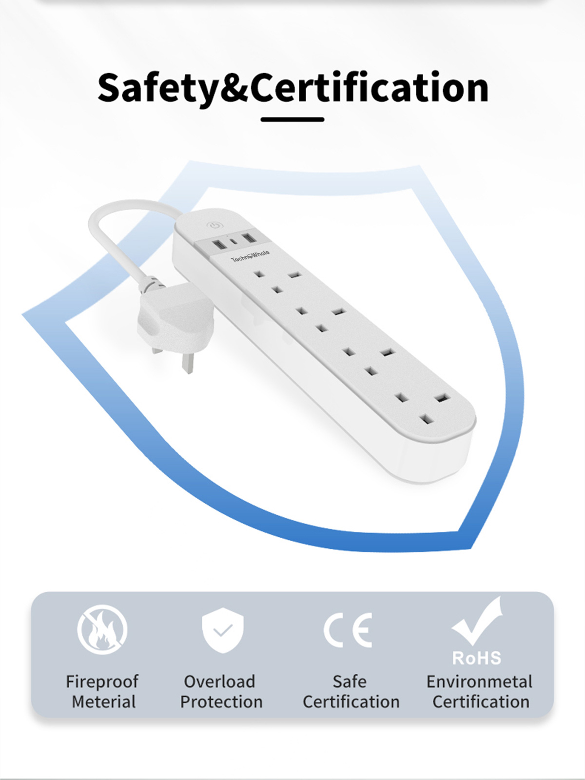 Built with fire-resistant materials and certified for safety (CE & RoHS), this surge protected smart power strip is designed for durability, performance, and peace of mind.