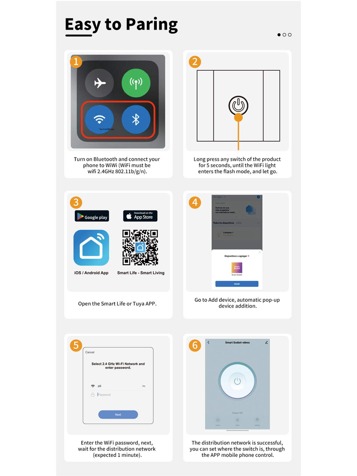 Connect easily to your 2.4GHz WiFi network and control everything through the SmartLife app. Turn appliances on or off remotely, create schedules, set countdown timers, and automate your home for convenience and energy efficiency.