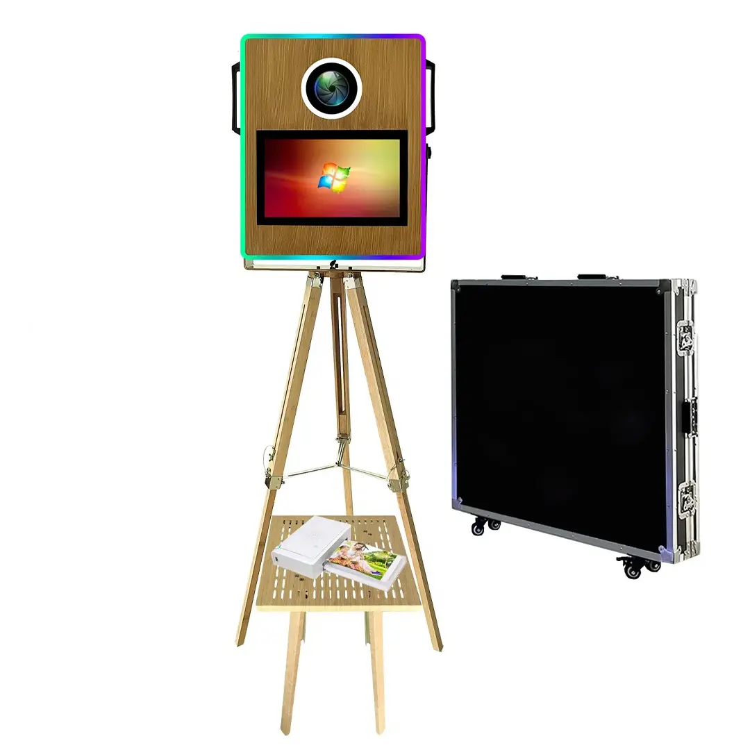 Xria Vintage Wooden Photo Booth with 15.6 inch Touch Screen Selfie Photobooth Compitable with DSLR Cameras for Weddings Parties and Events