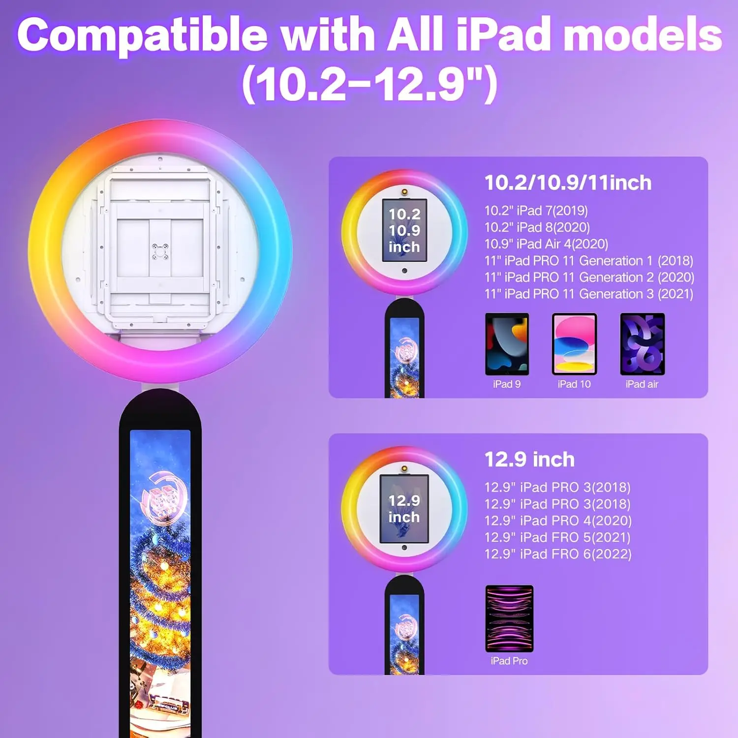 🌟 Xria XR-P2V Portable iPad Photo Booth with Remote & APP Control | RGB Ring Light Selfie Booth Stand