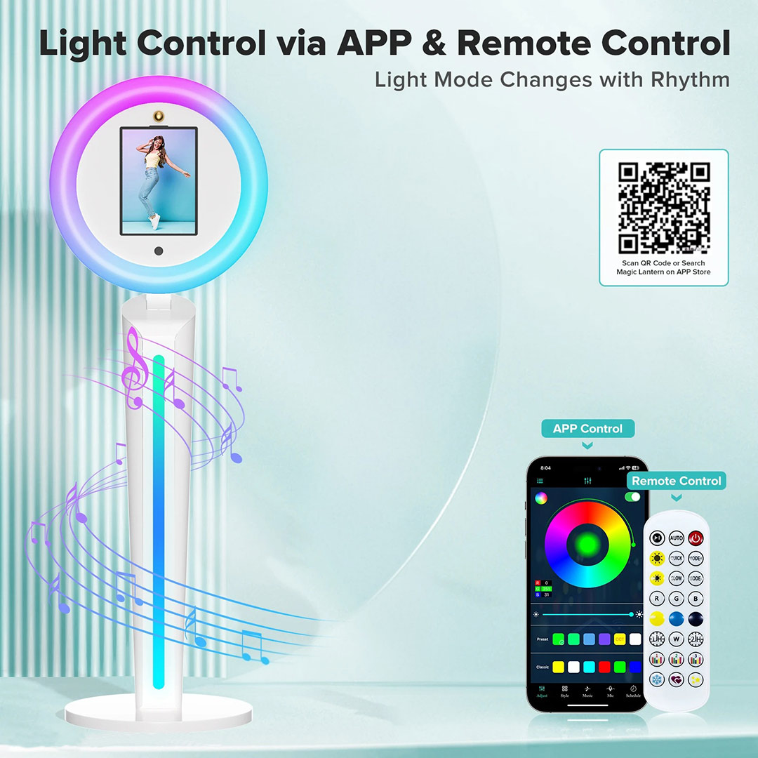 Xria XR-Z1 iPad Photo Booth with Remote & APP Control | RGB Ring Light Selfie Booth Stand